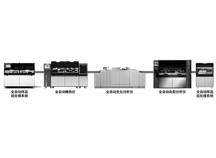 武汉文博医疗健康咨询有限公司将自主研发的全自动样本全处理系统、全自动酶免仪、全自动血型分析仪、全自动样本回收系统与日立7600生化分析仪进行整合,设计为一套完整成熟的适合血站的全实验室自动化流水线系统的解决方案,满足临床全自动化的检测需求。